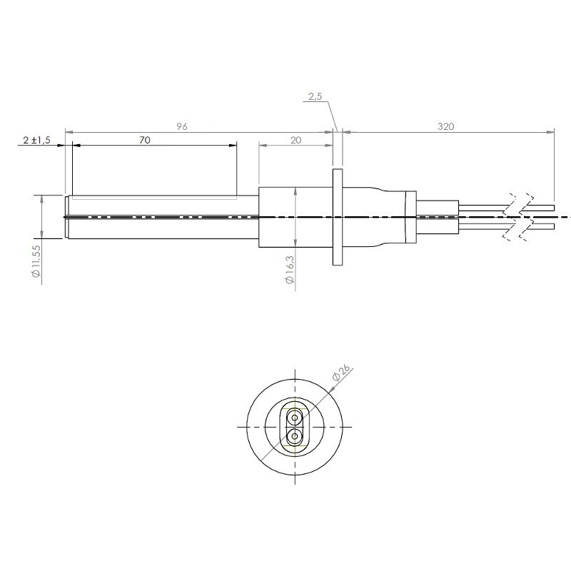 Bougie d’allumage Bestove – 300 W / 155 mm – Sans filetage (tige lisse) – Câble 50 cm